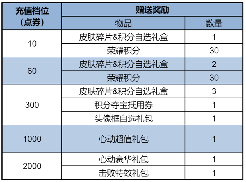 皮膚碎片&積分自選禮盒:打開禮包可任意選擇以下獎勵之一:榮耀積分*10或皮膚碎片*1