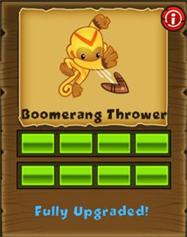 回旋鏢猴,在《射氣球》游戲里技能可見一斑。弧線式攻擊,射速一般,回旋鏢開始的時侯連續攻擊3個氣球后消失。