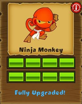 忍者猴,超贊,剛開始可以挺過好多關!攻速較快,初期即可攻擊迷彩氣球。(順帶一提:忍者猴的原型是《特種部隊》里的黑白忍者“蛇眼”和“白幽靈”)