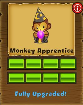 (增加射程)→(增加射程且能擊中迷彩氣球)→(射速下降但可以攻擊18個氣球)→(增加對陶瓷氣球的攻擊,可以攻擊鐵質氣球)