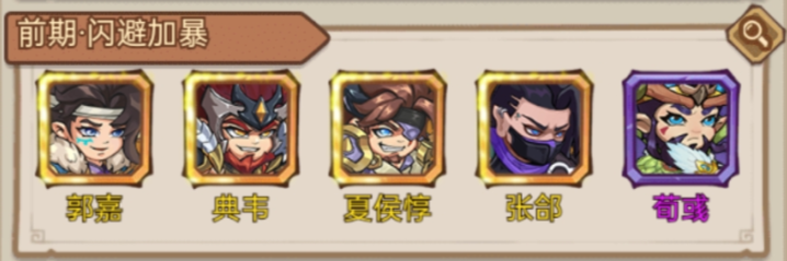 以魏國陣容為班底,前期閃避屬性較高可規(guī)避技能;輸出以夏侯惇,郭嘉為主,其他武將配合夏侯惇技能”閃避后提高暴擊”,打出大量傷害。