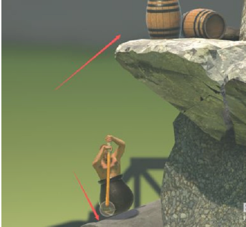 1、游戲一開始,只有你一個(gè)裝在罐子里的人和一個(gè)榔頭。你可以左右晃動(dòng)旋轉(zhuǎn)榔頭,比如將榔頭朝下。