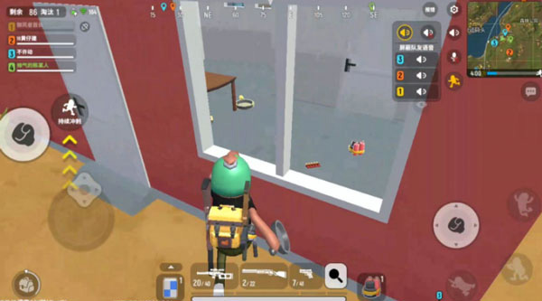 游戲進行一段時間以后,地圖隨機刷安全區,過幾分鐘會有一片藍色的毒替代安全區外的地方,在毒內會持續掉血,于是要求玩家在一定時間內跑到安全區內。