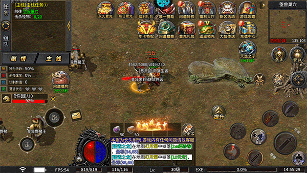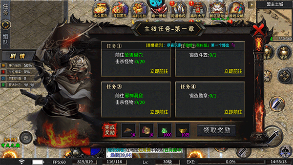 5、進入主線任務中,開啟自動戰斗模式,正在一鍵自動式刷怪中;